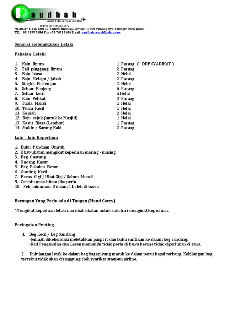 Kelengkapan Umrah Utk Jemaah Lelaki Pdf
